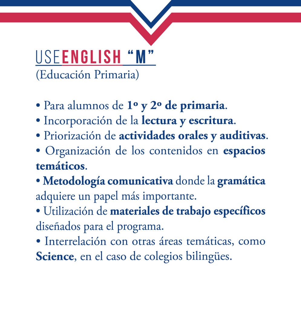 USE ENGLISH es un método en constante evaluación, ya que revisa el aprendizaje de los alumnos no sólo al inicio del curso sino también mes a mes para ver la evolución del nivel del alumno.